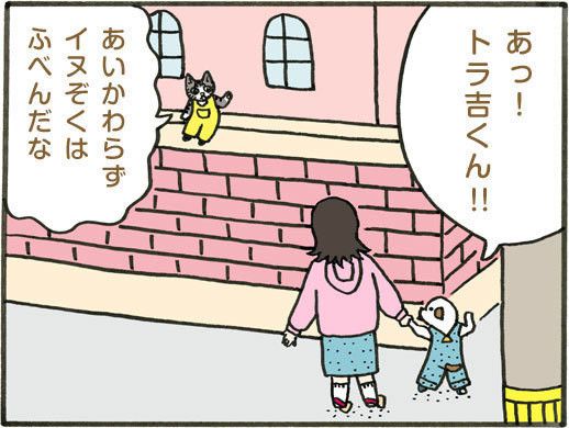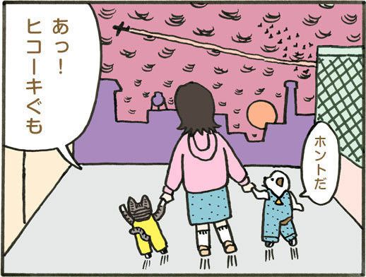 4トコトコ 「ヒコーキぐもをいっしょにみてるトコ」 Looking together at contrails
