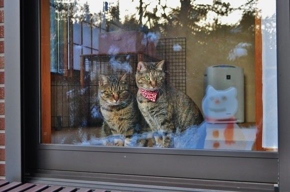 部屋の中から仲良く並んで