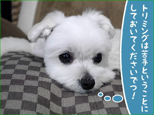 「かわいい」とか「頑張って」といっぱいほめてもらえるからか、トリミングに行くのはイヤではないよう。抵抗して暴れているのかと思いきや、ハイテンションになっているみたいです。ひろしがついている優しいウソにお付き合いしようと誓った今日このごろなのでした。