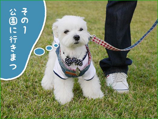 プロフィール:ひろし(オス・3才/マルチーズ)。2011年3月22日生まれ。パパが大好き。ママは召し使い。気弱なビビりだが、ママには強気。ワンコが苦手だが子供は大好き。