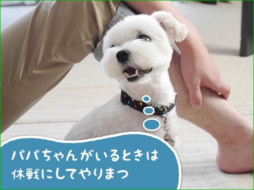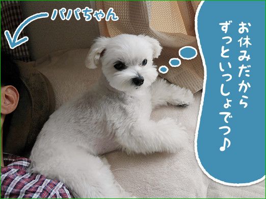 パパちゃんも口では「甘えん坊で困るなぁ」なんて言ってますが、こんなひろしにメロメロだったりします。 早起きが苦手なのもパパに似たのかな?(笑)。