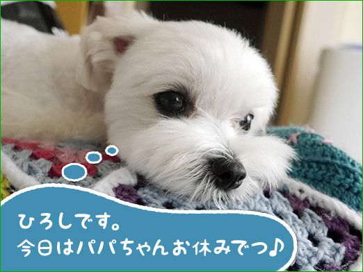 プロフィール:ひろし(オス・3才/マルチーズ)。2011年3月22日生まれ。パパが大好き。ママは召し使い。気弱なビビりだが、ママには強気。ワンコが苦手だが子供は大好き。