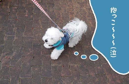 抱っこをしてほしいひろしが泣きの演技です。この演技に騙されちゃうパパちゃん。いつもはここで抱っこしちゃうけど、今回はたくさん遊んであげることを約束してお散歩を頑張らせました。
