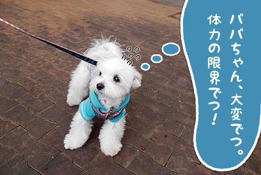楽ちんに散歩するために!そして、パパちゃんに甘えるために、ひろしの演技は3才を過ぎてからずいぶんと上手になりました。いつもお散歩しているママちゃんは騙されないけれど、ひろしに甘いパパちゃんには効果テキメンです。