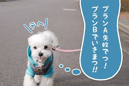 ひろしのお散歩は続きます。いつものコースも半分くらい過ぎたころ、ひろしのプランBが始まりました。