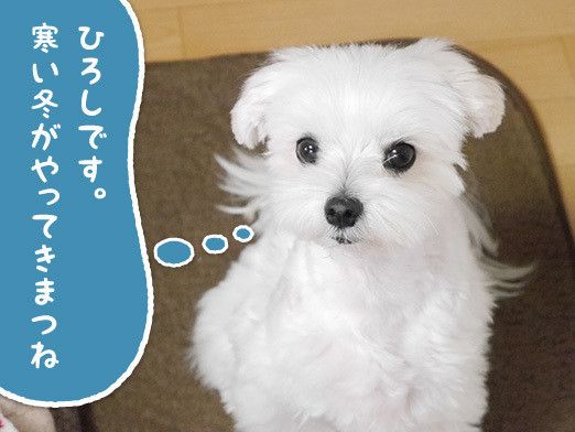 プロフィール:ひろし(オス・3才/マルチーズ)。2011年3月22日生まれ。パパが大好き。ママは召し使い。気弱なビビりだが、ママには強気。ワンコが苦手だが子供は大好き。