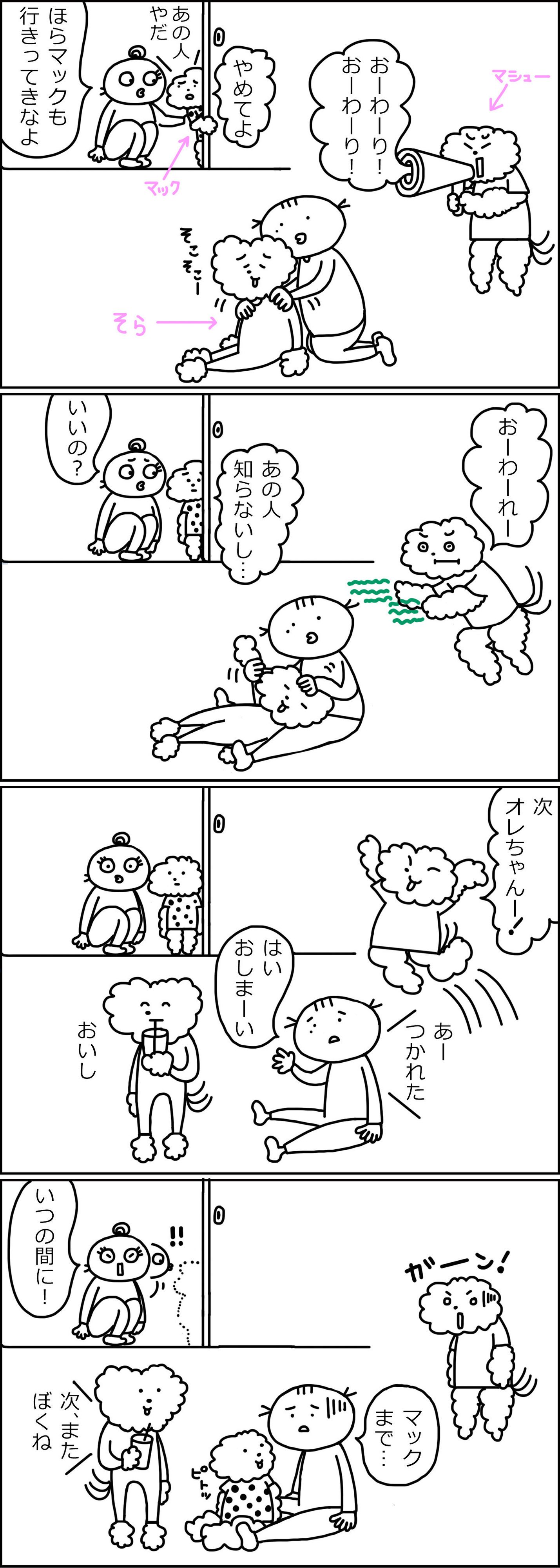 ○4コマシュー: 評判の癒し処?ワンコの行列