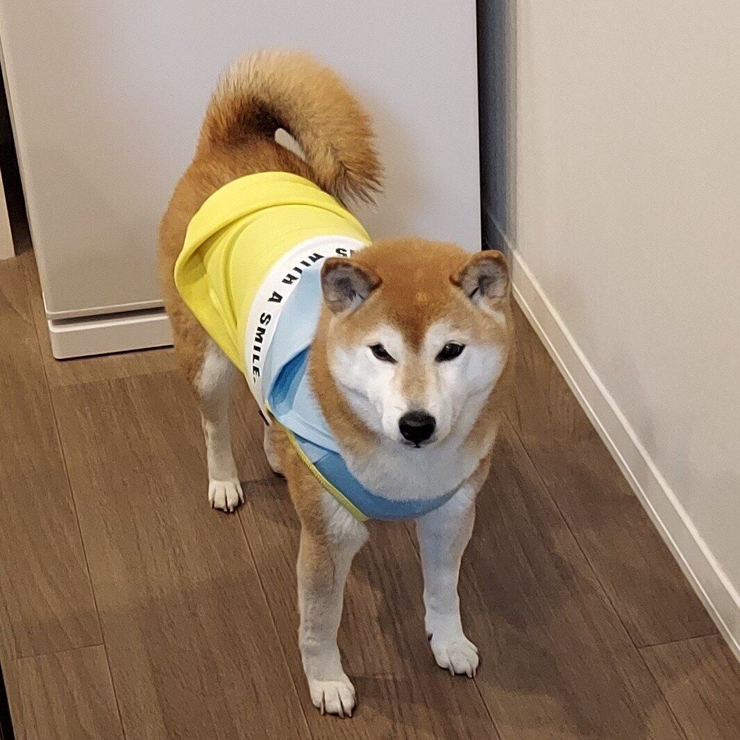 柴犬あるある、可愛い服を着ていてもスイッチが入ると"犬が変わった"顔つきになっちゃうとこ|連載「ここ掘れここ柴」vol.211