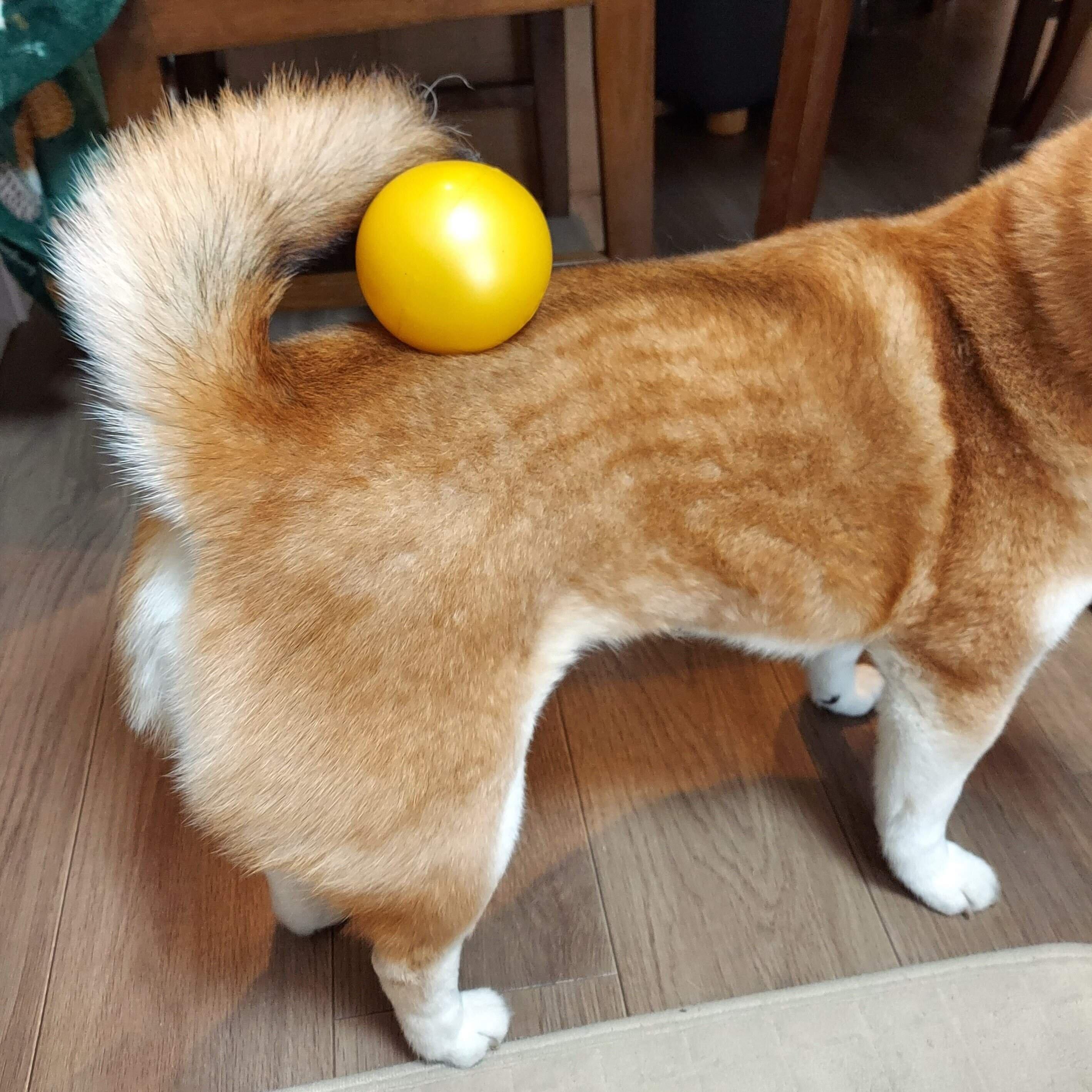 背中に乗っているボールを"しっぽで支えているところ"です。