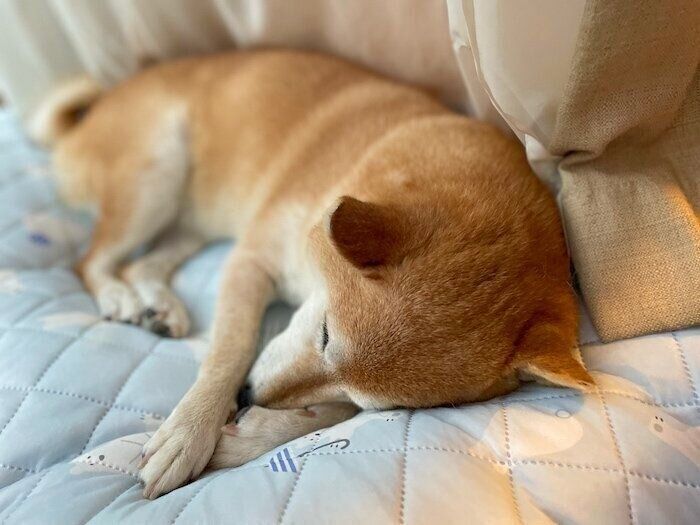 @meru_Uo_oUさんの愛犬・メルちゃんの寝姿がかわいすぎました。メルちゃんは、迎え入れ初日からおなかを見せて、あおむけで眠っていたのだとか。そんなメルちゃんの5年後を、飼い主さんに教えていただきました。