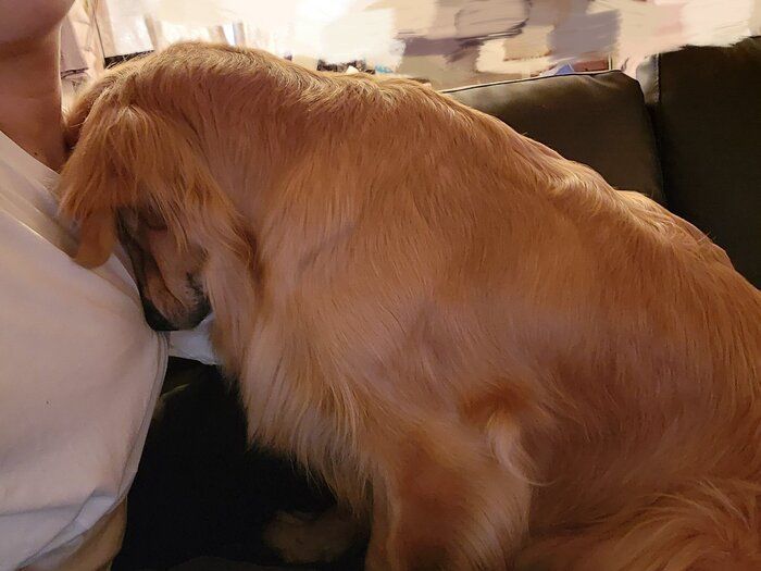 とある日、飼い主さんはソファに座りながら横にいるシャーロットちゃんをなでていたそうですが、