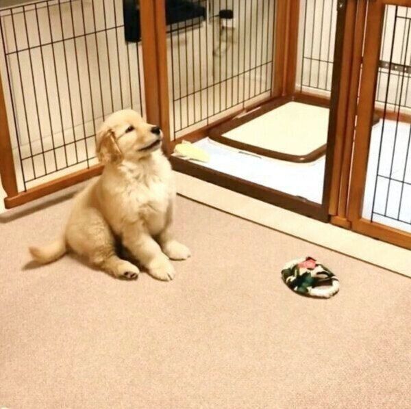 @rinman3さんの愛犬・コメちゃん(取材当時5才/ゴールデン・レトリーバー)。こちらの写真は、飼い主さんの家にやってきて2〜3日ほどが経過した頃のコメちゃんの様子だそう。