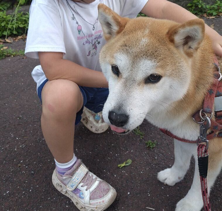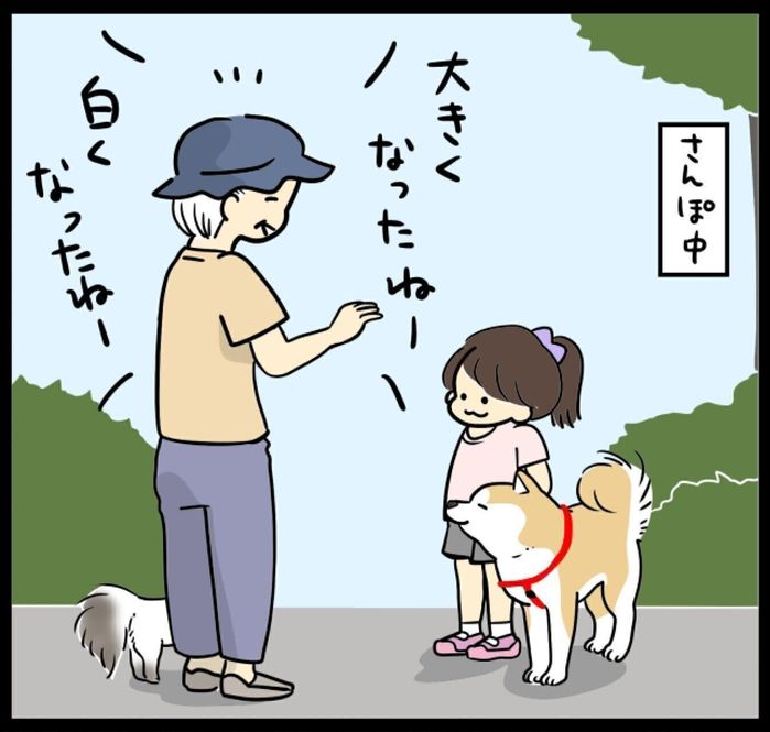 娘は赤ちゃんの頃からタロさんと散歩をしているので、散歩で顔なじみの方が成長した娘に声をかけてくれるのです。