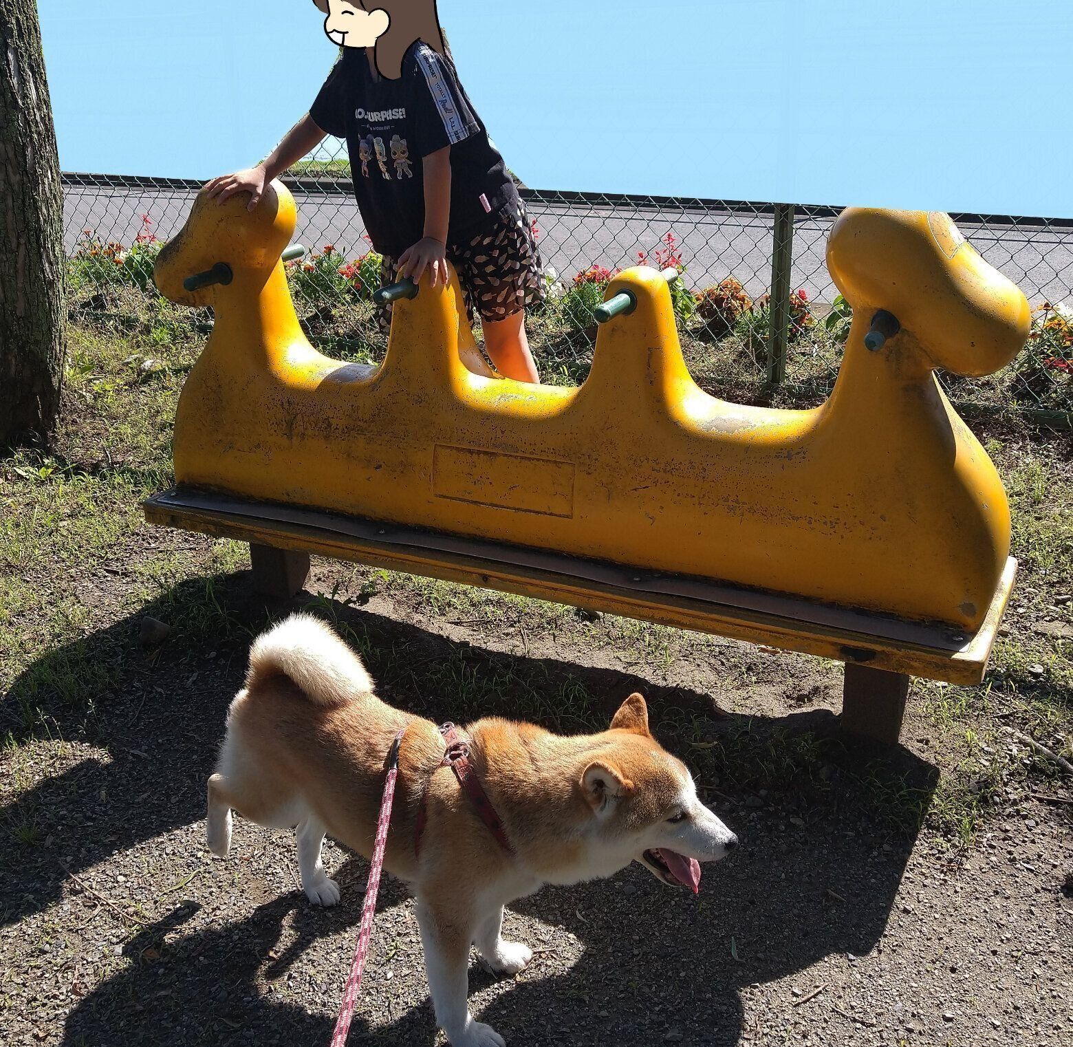 公園で娘が遊んでいるのをタロさんと見守っているときも、娘や私にとっては普通に遊べる気温ですが、タロさんは暑いのでは・・・と感じてしまい、遊具の小さな日陰にもタロさんを入れようとしてしまいます。