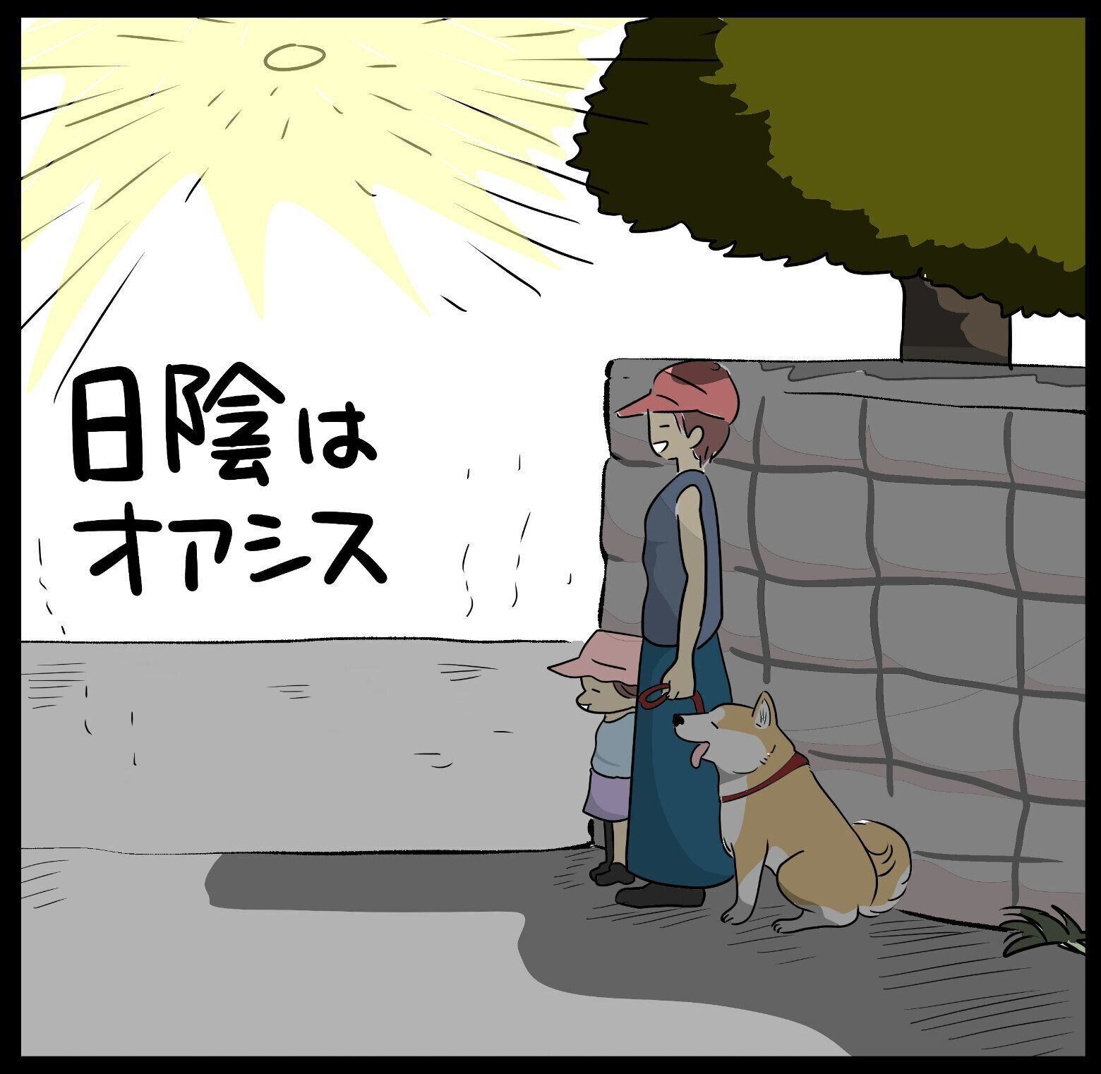 日陰が多い場所を選んで散歩をするのは絶対です。
