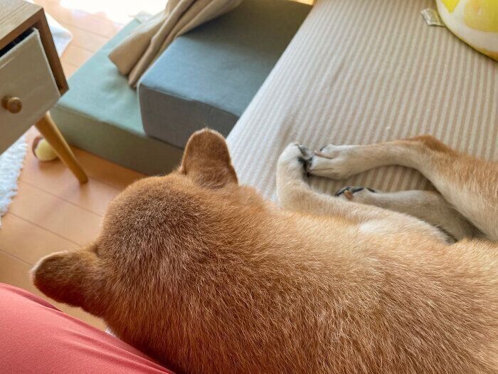 紹介するのは、X(旧Twitter)ユーザー@Hana_20250127さんの愛犬・華ちゃん(取材時・生後11ヵ月)。こちらは、走り疲れて眠ってしまった華ちゃんをとらえた写真です。