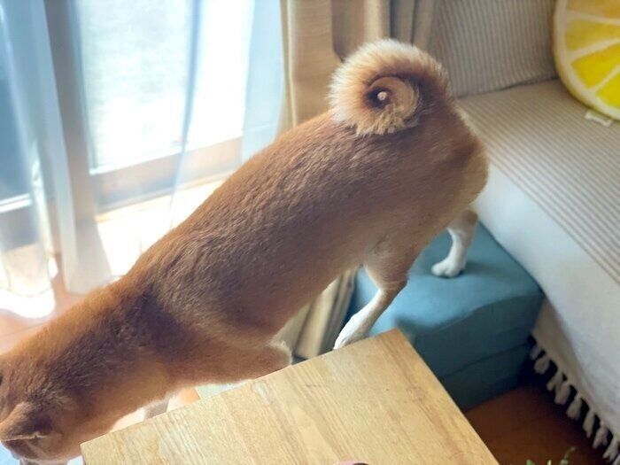 飼い主さんが好物のさつまいもを蒸していると、キッチン前でじっと待つみらいくん。吠えることもなく、静かに忍耐強く待つ健気な姿に心がほっこりします。