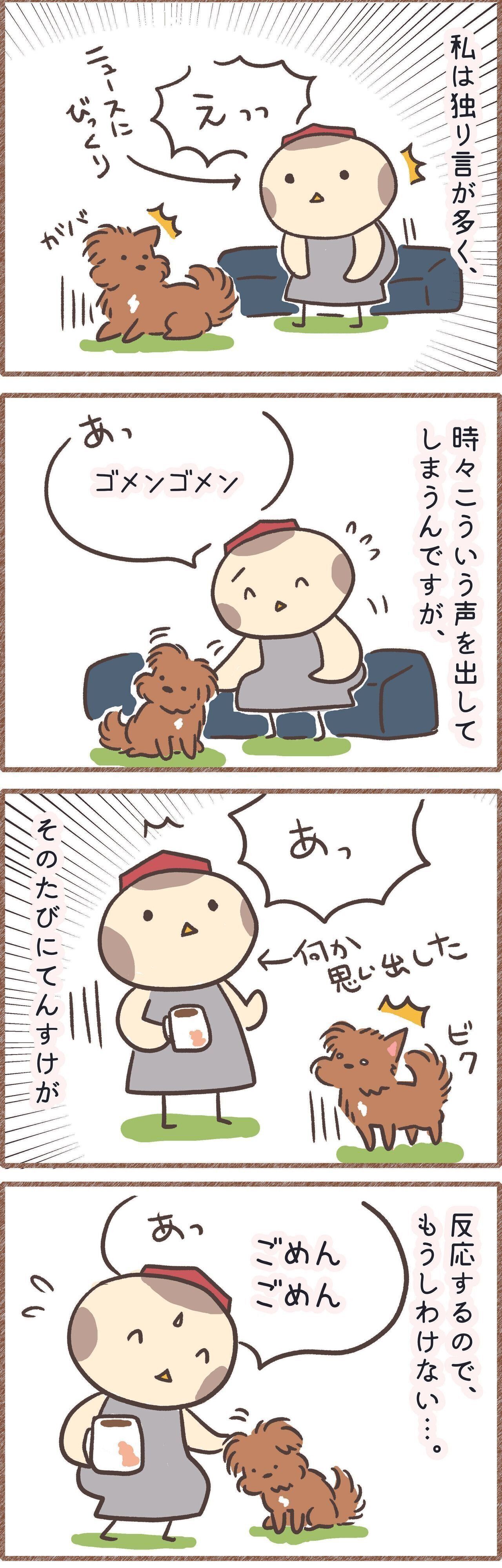 そばに座ると安心して熟睡してくれたりして本当に可愛いんですが、そばにいる時に、私がふと独り言を言ってしまうんです。