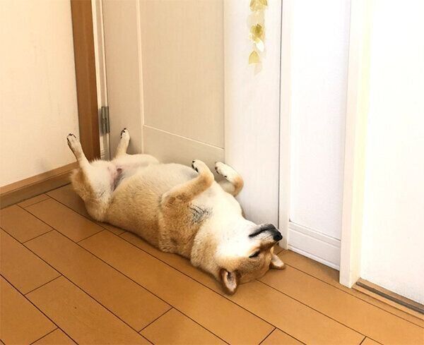 パパの体に顔を埋めていじける柴犬、「おやつは!?」と言ったら→反応が可愛い!