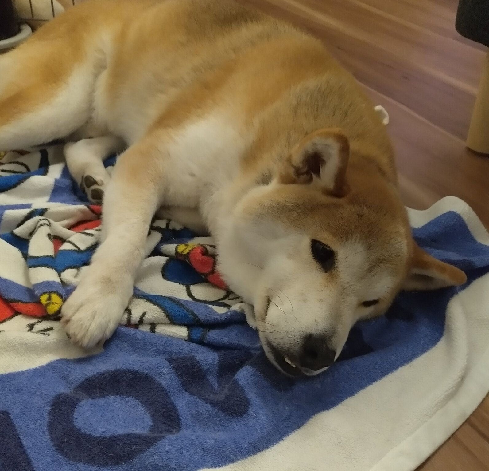 大好きなタオルを前に、ダラけ過ぎちゃった柴犬タロさん|連載「モフモフ柴とプニプニ娘」第241話