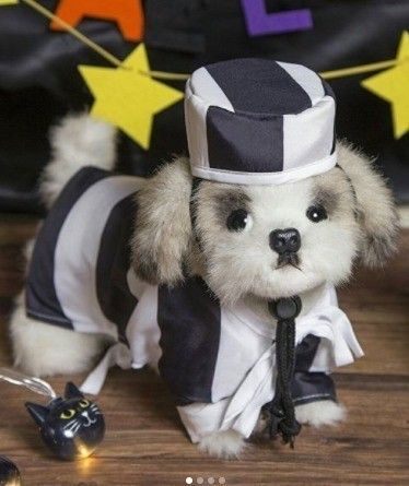 ハロウィンになると、仮装したワンちゃんが増えてきます。いろいろな仮装があるなか、白黒の囚人服は渋さをかもしだし、多くの人から注目を集めることでしょう。飼い主さんも囚人の仮装をして、リードをチェーンタイプにすると「囚人同士が街を歩く」という仮装になりますよ。しかし、チェーンタイプのリードはちょっと重いので、ワンちゃんが嫌がらない程度にしてあげてくださいね。
