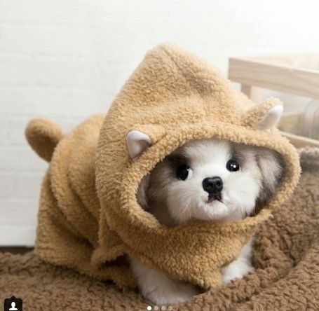 「羊の皮を着た狼」という言葉があります。これは「親切そうにふるまっていても、心の中では悪いことを考えている」というたとえです。しかし、ワンちゃんがワンちゃんを着るとどうなのでしょう?悪いことを考えている?いえいえ、ただ愛らしいだけですね!