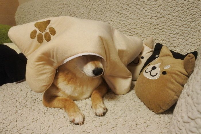 枝豆のようにボーン型のクッションに収めることができるしば丸さんたち。