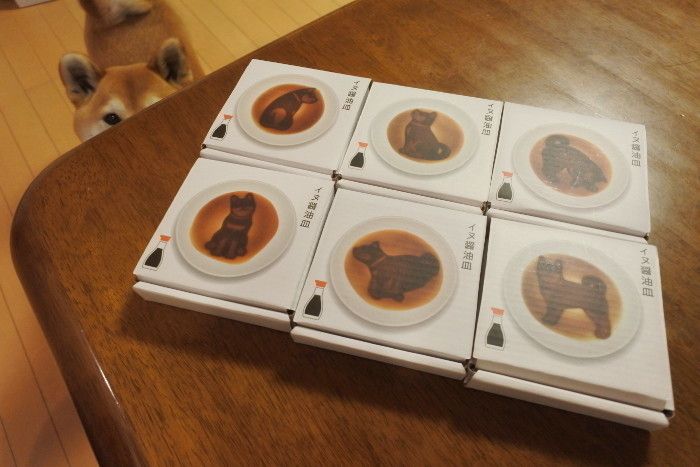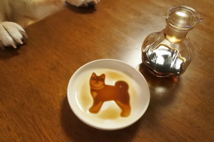 お醤油を注ぐとあらかわいい!柴犬が浮き出ます。黒柴さんぽいですね。薄口醤油なら赤柴っぽくなるかも?