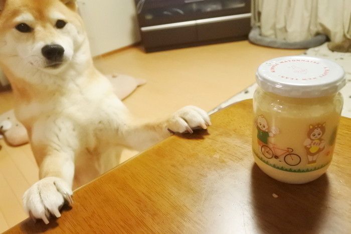 マヨネーズ大好きなマロたんも気になるようです。もちろんあげませんけれど。