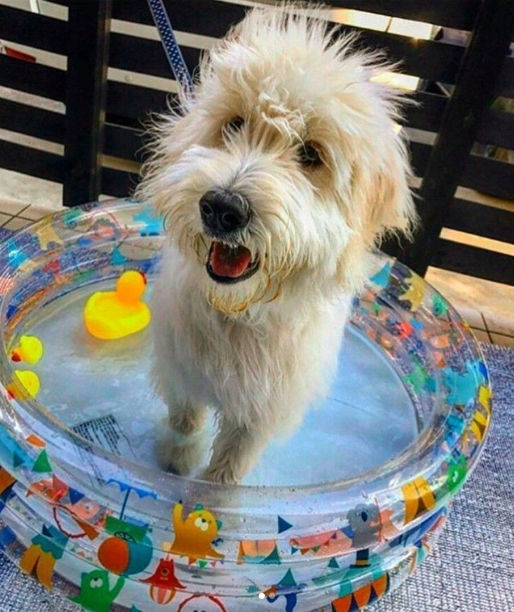 夏場の暑さ対策にピッタリなのが、程よい大きさのミニプールです◎大型犬だと狭くなってしまうかもしれませんが、小型~中型犬には最適の大きさ♪水遊びが大好きなワンちゃんにおすすめです!
