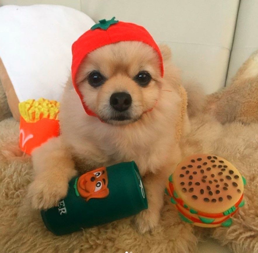 最近では、100円ショップや300円ショップでも、ワンちゃん用のおもちゃや洋服、ベッドなどのグッズが購入できるのをご存知ですか?ちなみに上の画像のおもちゃや被りものも、100円ショップと300円ショップで販売されているものなんだそうです◎