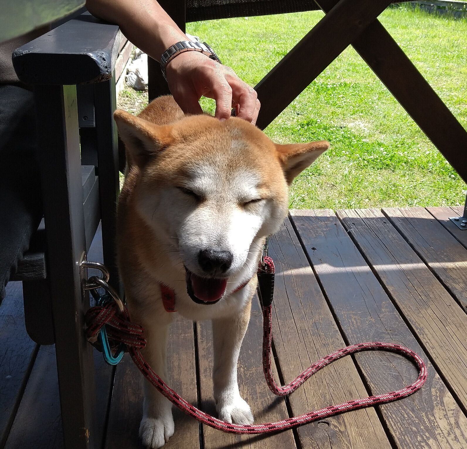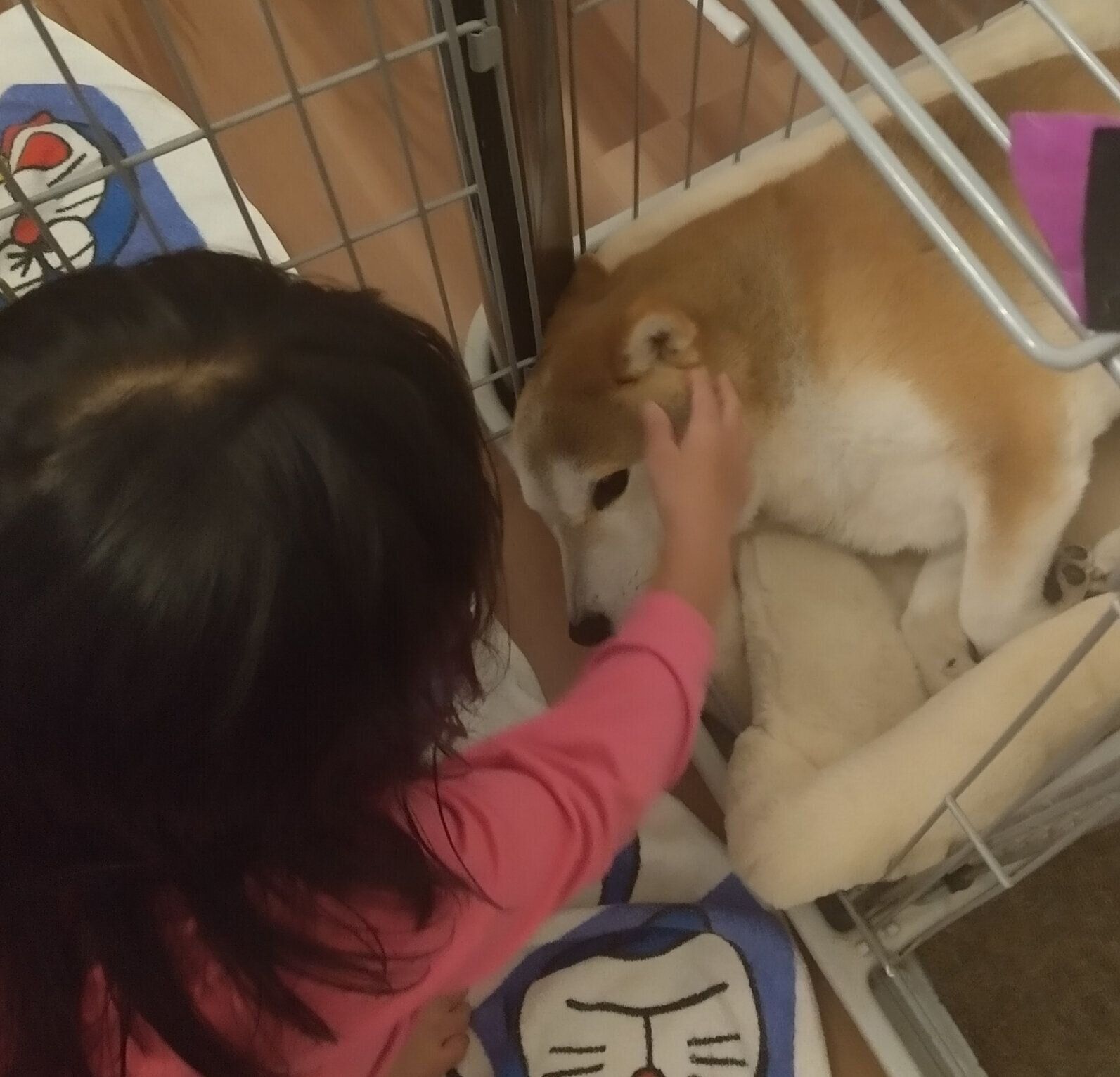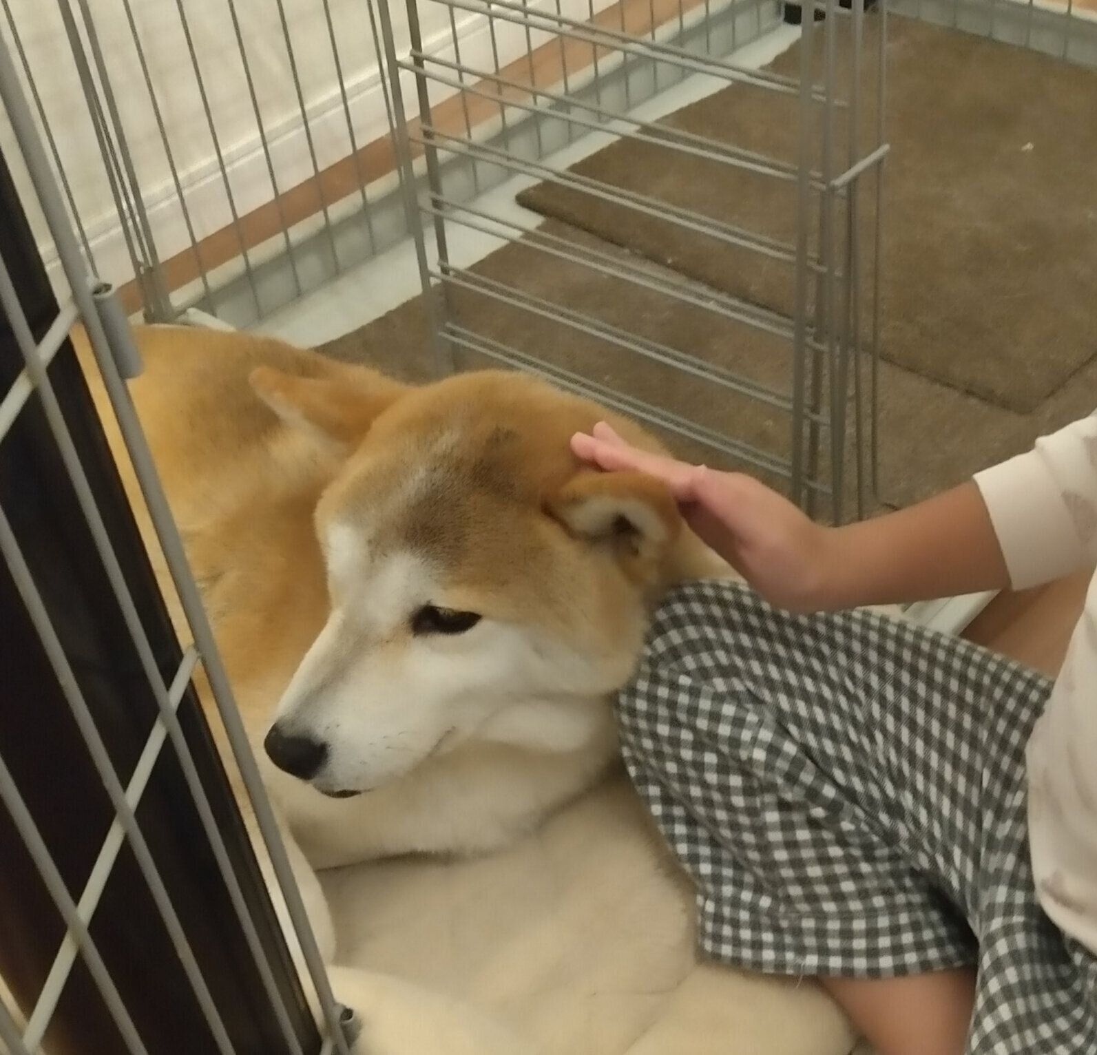 パパに撫でられて幸せそうなタロさん