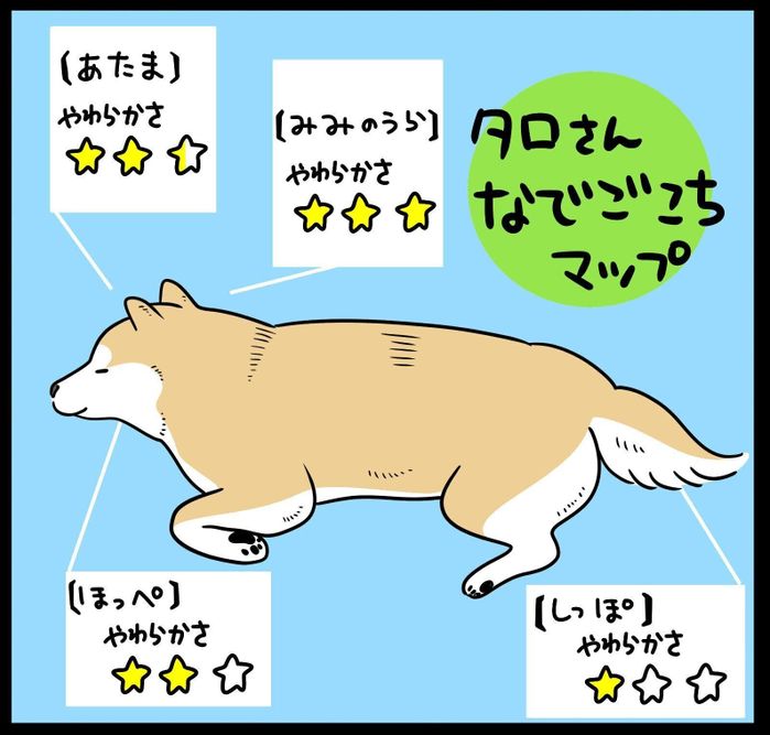 場所で気持ちよさが異なる「柴犬なでごごちマップ」|連載「モフモフ柴とプニプニ娘」第242話