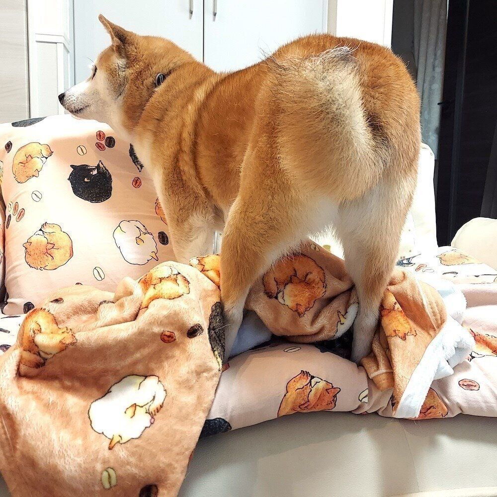 柴犬あるある、寝床へ飛びこむ勢いがありすぎるとこ|連載「ここ掘れここ柴」vol.233