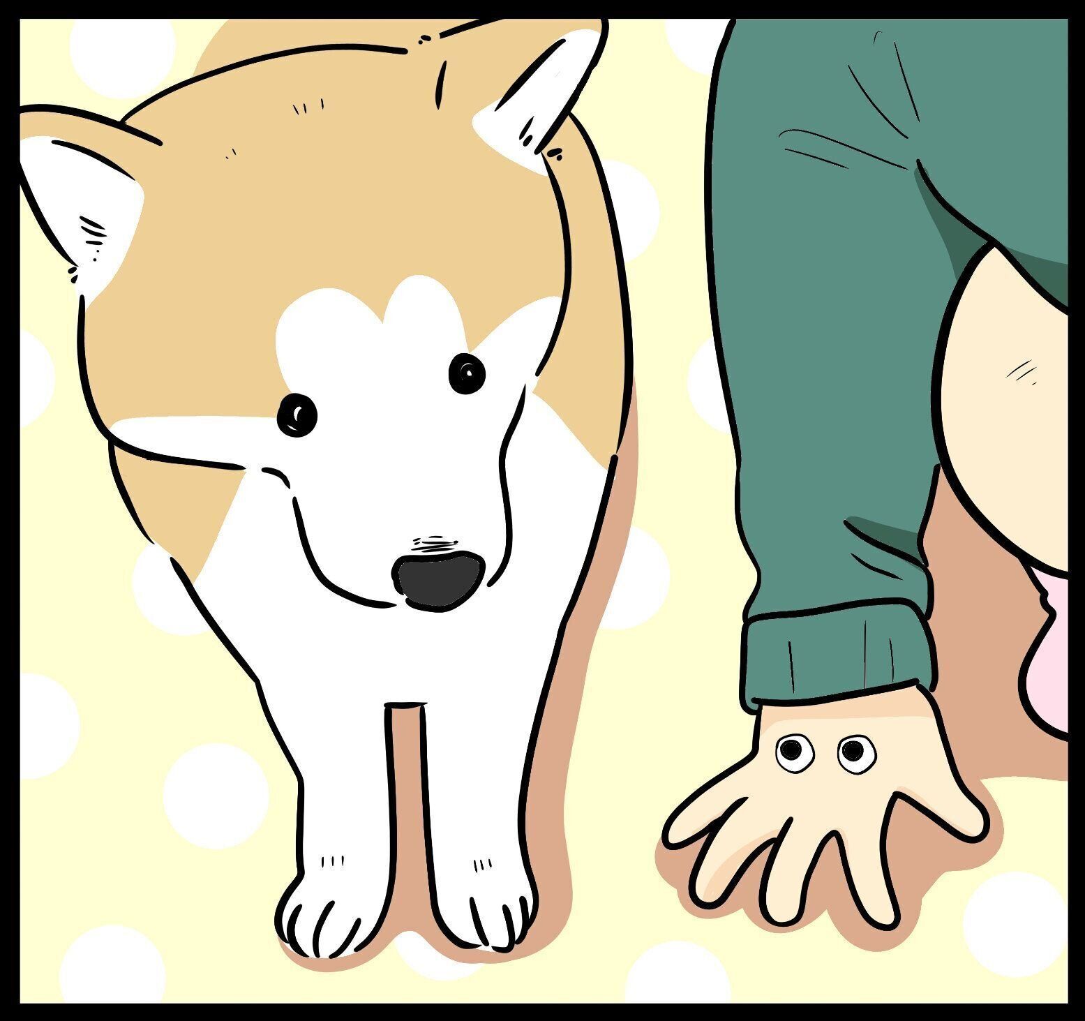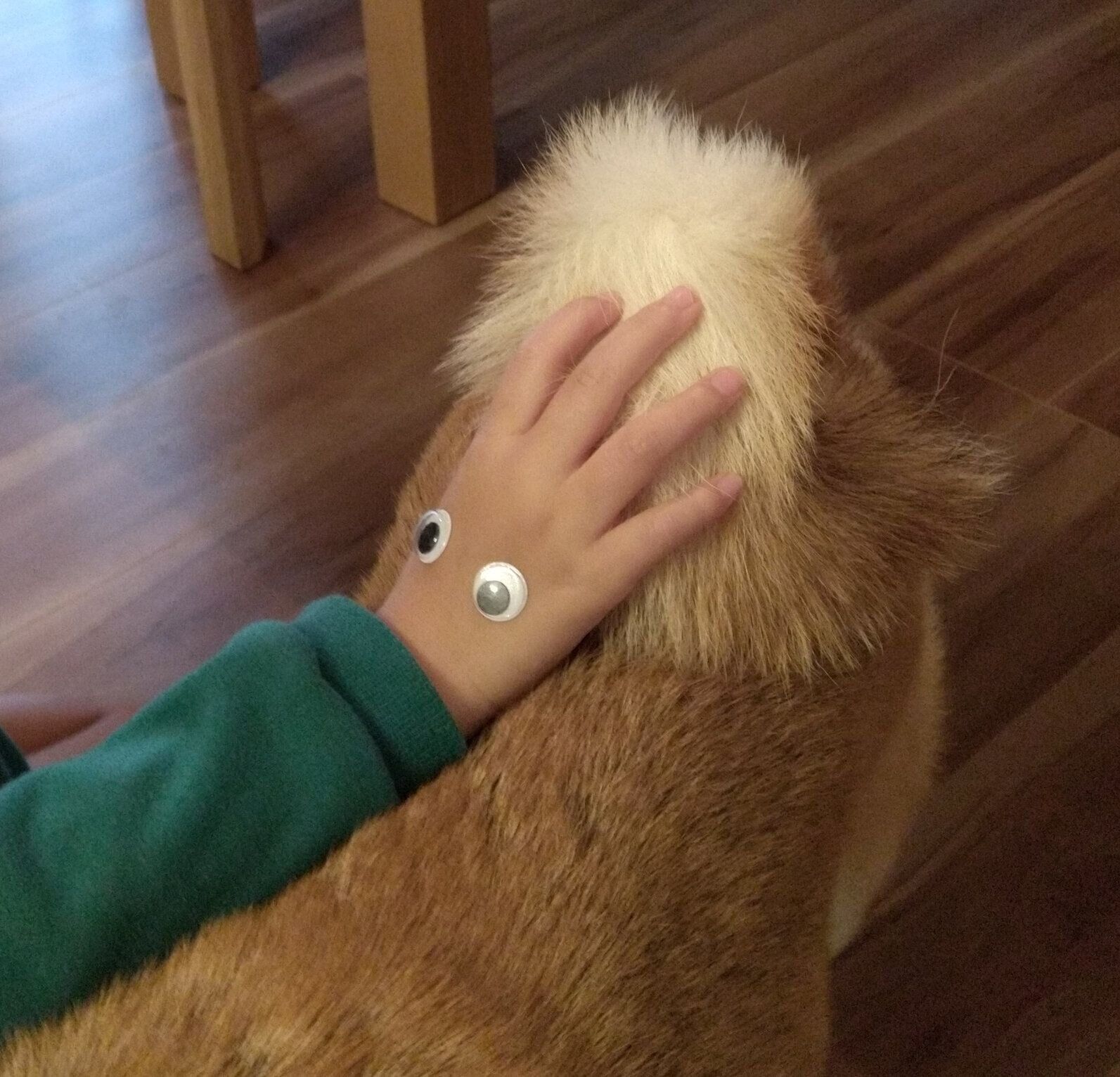 タロさんのしっぽを優しく触っているときも、謎の生き物(娘の手)がタロさんのしっぽで一休みをしているかのようです。