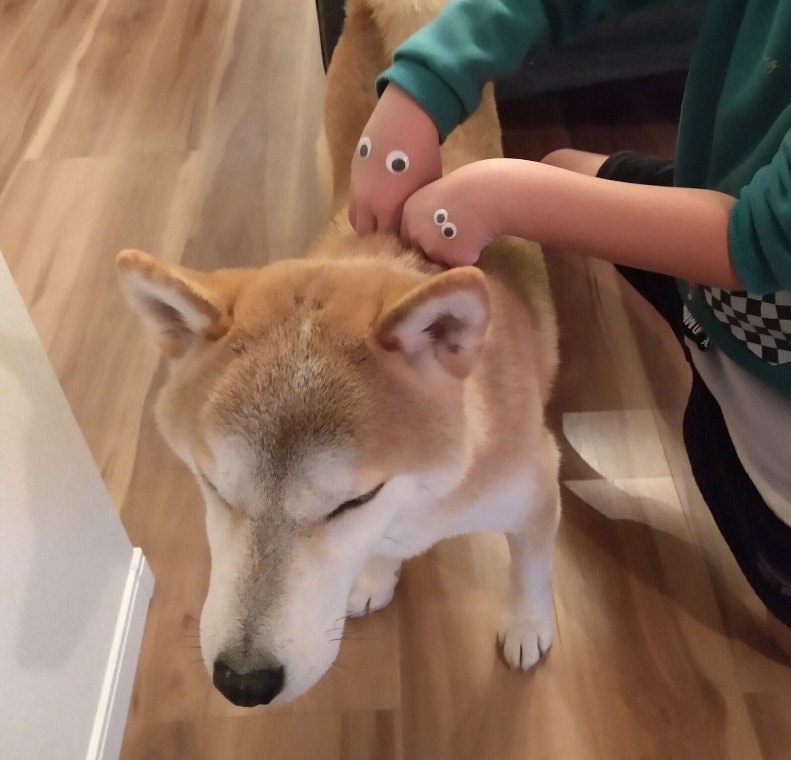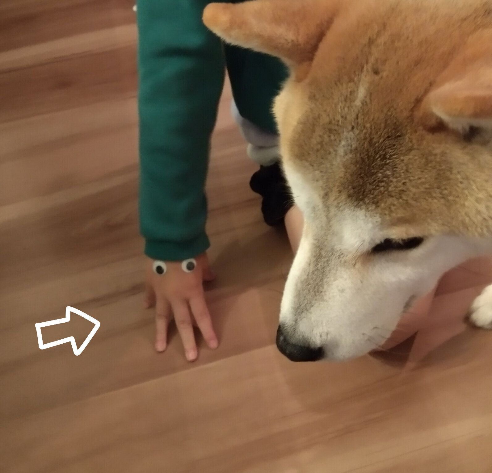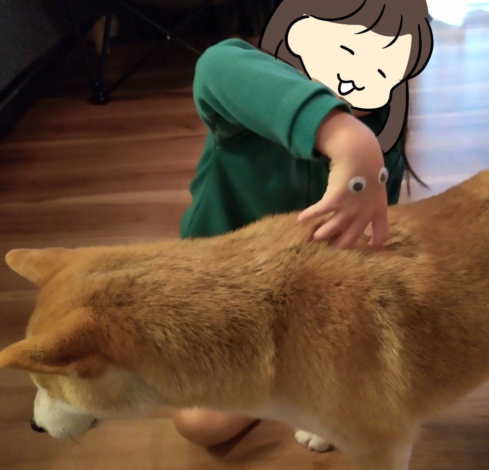 タロさんは、娘にいつも通り撫でてもらっていると思っているので謎の生き物には無関心でしたが、私から見ると目がついているだけで生き物のようで気になってしまいます。