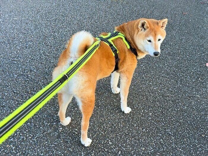 散歩デビューの日、ハーネスが大きくて“むちむち”に見えたポメラニアンの子犬・たわしちゃん。初めての散歩で見せた意外な一面や、2才目前の現在の“たぬき顔”な成長ぶりを紹介します。