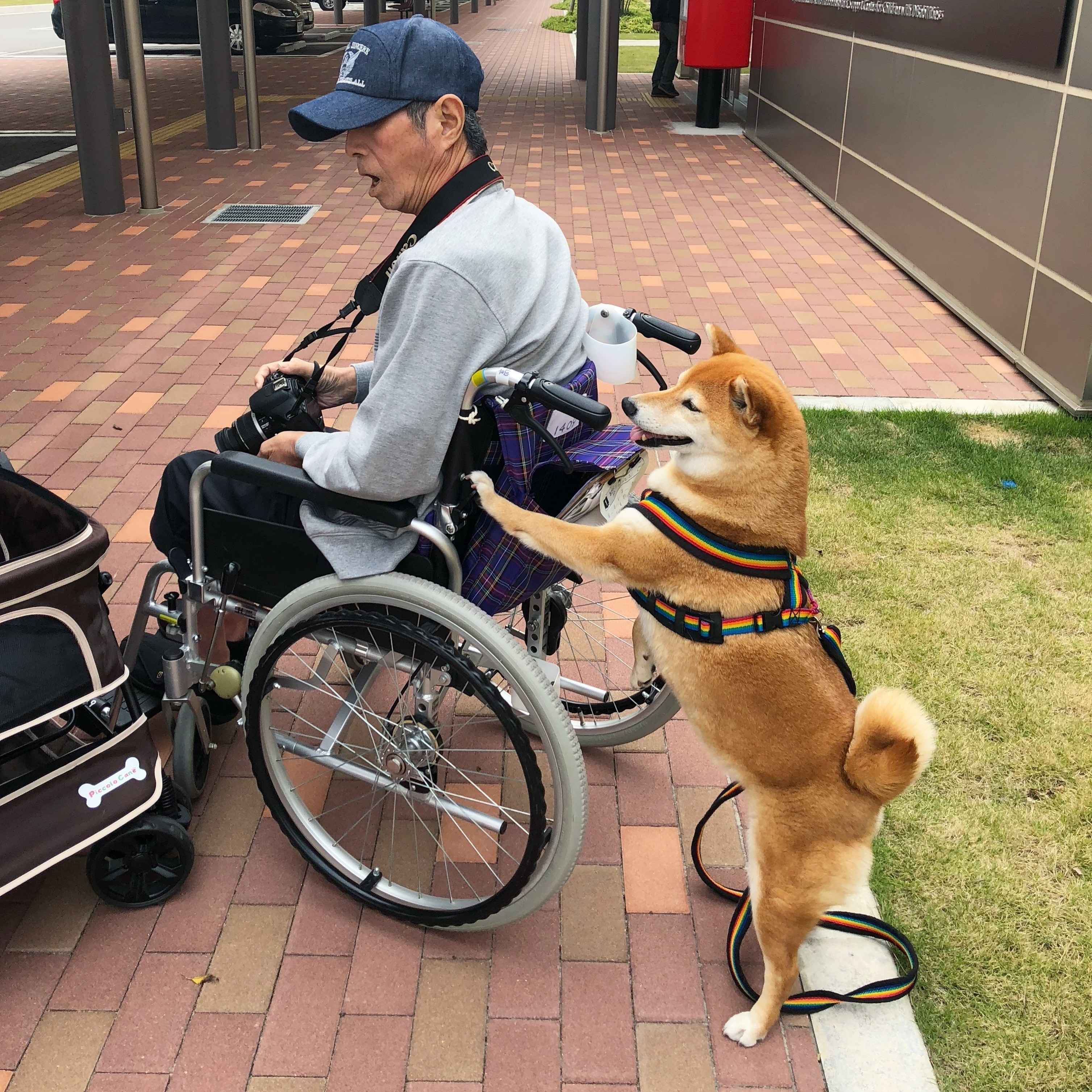 柴犬マロたん、大好きなじぃじのリハビリに一役買ってみた♪
