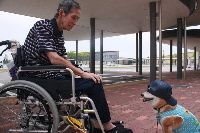 マロたんを連れていくと、とても穏やかで病室にいる時や他のリハビリをしている時とは明らかに表情が違います。マロたんを撫でようとか、写真を撮ろうとか、自分の意思で体を動かすことも増えます。