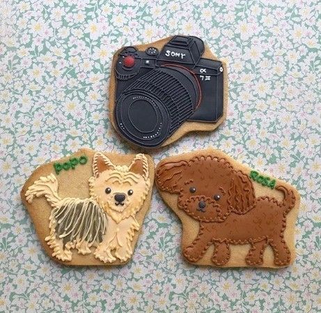よく愛犬の写真を撮っているカメラ好きの犬友や、旅好きのアクティブな犬友への手土産には、こんなデザインのアイシングクッキーはいかがでしょうか?名前入りのかわいい愛犬と、詳細に作り込まれたカメラモチーフのアイシングクッキーに感激すること間違いなし!