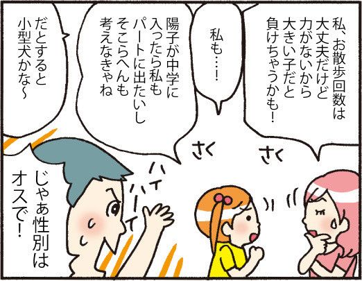 犬の寿命は15〜20年ほど。つまり、子犬を一度飼い始めたら、その間、ずっといっしょに過ごすことになるわけです。そのため家族構成の変化など、将来のことを考える必要も。始家の陽子ちゃんは、現在10歳。今は陽子ちゃんが積極的に犬のお世話のお手伝いをすると話していますが、10年、20年後は……? 犬を迎えるならば、将来的に犬のお世話をする体力と時間があるのかなどをじっくり考え、決断することが大切です。