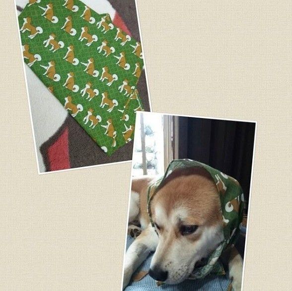 こちらは、投稿者のatomu_mmさんが「ミーツ」で購入された柴犬柄の可愛い手ぬぐいです。手ぬぐいは、手を拭いたり何かを包んだり、かぶったりしてもOK(笑)写真に写るのは、昨年家族になったという元保護のアトム君です♪とっても似合ってるよ~♡
