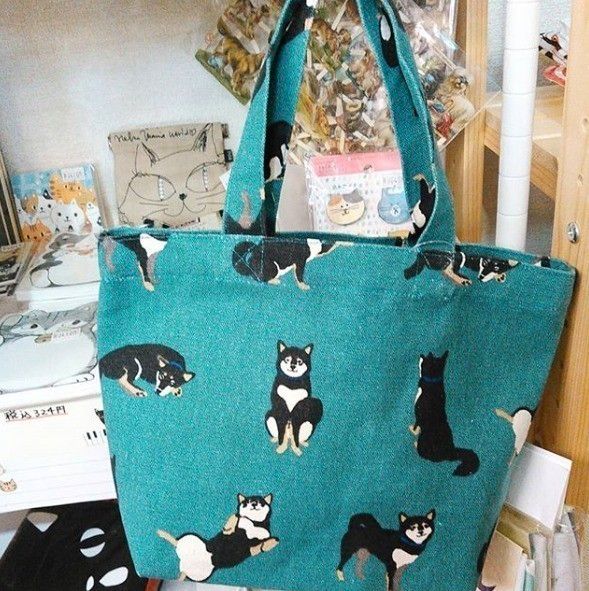 ナチュラルペットフードを中心に販売する「マイフォレスト」で取り扱っているのが、こちらのミニトートです。黒柴がお腹を出しているところや、座っているところ、後ろ姿など犬の特徴をつかんだイラストが散りばめられていてとってもキュート♪犬好きなら即買いアイテムの一つでしょう!