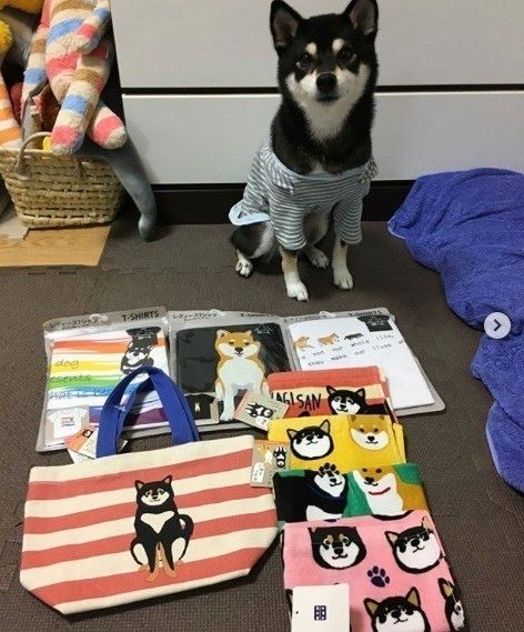 投稿者のazuki213shibaさんは、大好きな柴犬モチーフのアイテムをオトナ買い♪黒柴のグッズってこんなにたくさんあるのですね。なんとこの可愛いTシャツは300円で購入したそうです!お買い物上手ですね♪そして何より、うしろにオスワリしているあずきちゃんがとってもかわいいです♡