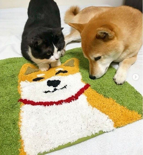 しばらくはインテリアとして置いておきたい可愛すぎる柴犬モチーフのマットです。