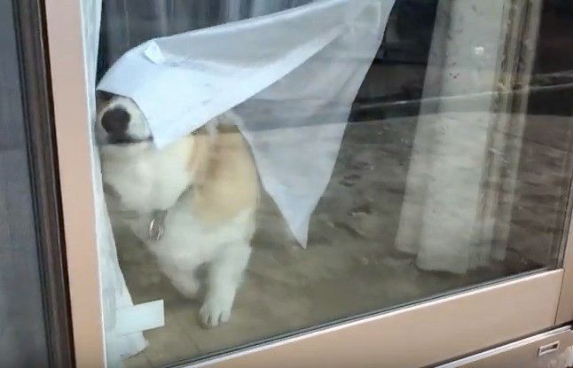 「おーい」窓をたたくまで気付かないでお昼寝してるコーギー
