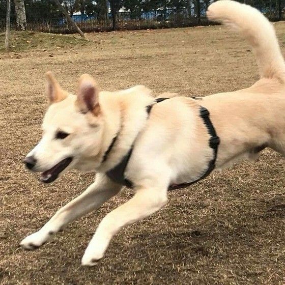 ・「最初のころは不安な顔つきでした。オドオドしていてヨタヨタ歩き、犬らしさがありませんでした。いまは同居犬にいろいろと教わりながら、体力もつき、楽しそうに安心して過ごしています」