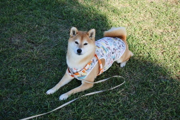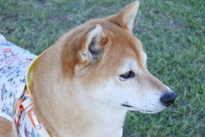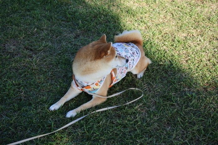 相変わらずお散歩は大嫌いだけど、木陰で風を感じてのんびりするのは大好きです。お盆が過ぎると風や空がどんどん近づきますね。