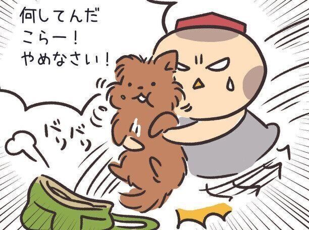 嬉しそうに悪さをするてんすけを見つけた瞬間