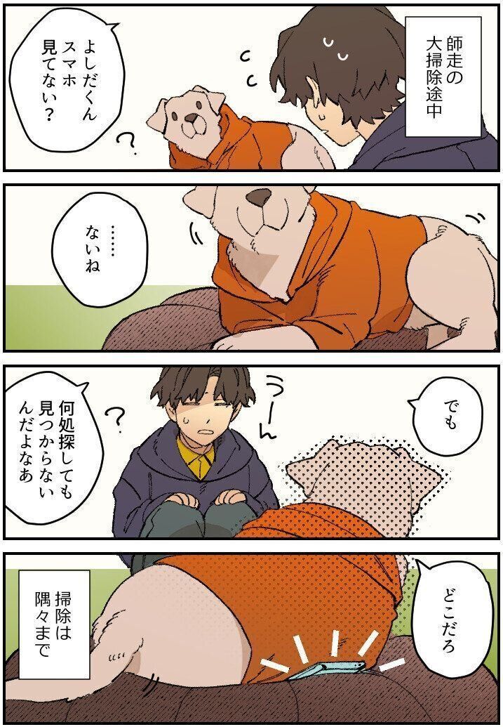 【連載】暮瀬姉弟と吉田くん 秋も遠のきすっかり冬模様になったこの頃。晴れ間の散歩が貴重になり、暖かいうちにと吉田くんを誘って出かける周一であったが外に出てみると北風が強く駆け抜けていた。一度外に出れば吉田くんが満足するまで散歩する周一だったが、今日は短くしようかなと吉田くんに声をかける。しかし、うきうきの顔で散歩に意気込んでいる吉田くんの顔に断念する周一だった。
